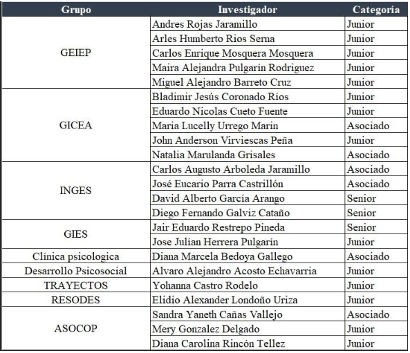 Resultados grupos de investigación de la Rectoría